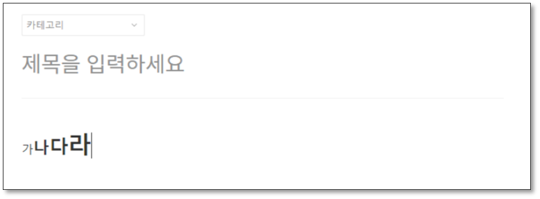 변경 전 저처럼 글작성란에 가나다라를 작성하거나
