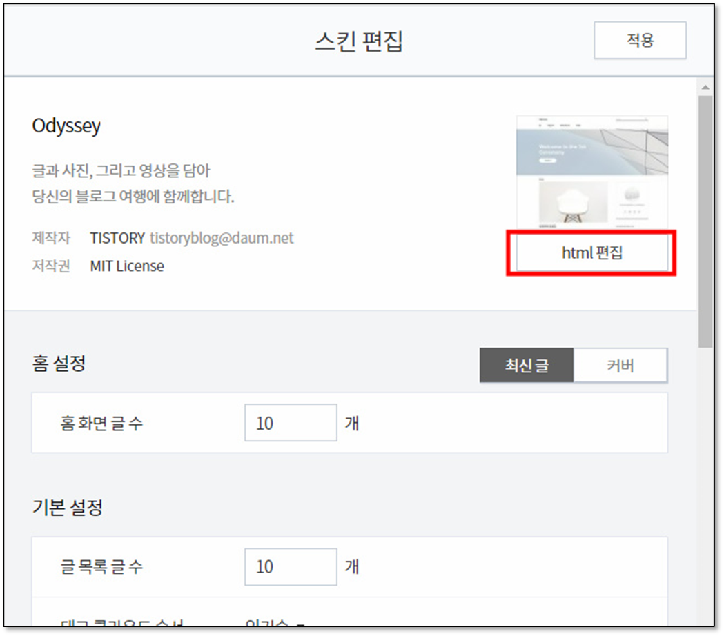 왼쪽 하단에 스킨편집으로 들어갑니다.